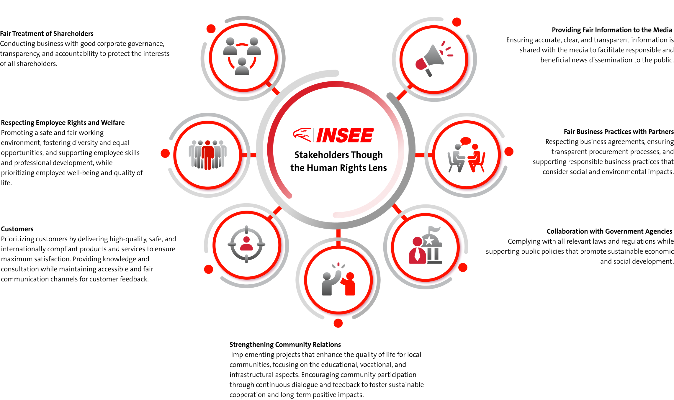 At INSEE, we are committed to upholding human rights principles across all our operations. Setting the standards for the built industry of tomorrow, we prohibit discrimination, ensure fair treatment of employees, and expect the same from our business partners. We engage transparently with communities and customers, continuously improving our human rights practices to create a sustainable future for all our stakeholders.