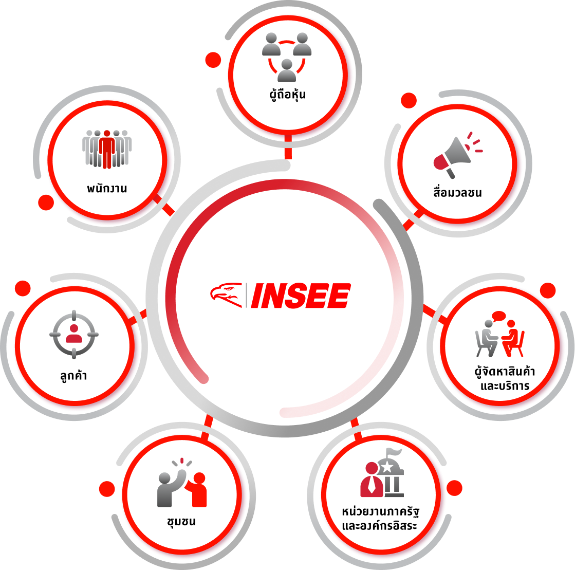 เป้าหมายของกลุ่มบริษัทฯ คือการสร้างความร่วมมือกับชุมชนและผู้มีส่วนได้ส่วนเสียอย่างต่อเนื่อง โดยกลุ่มบริษัทฯ มุ่งมั่นที่จะมีส่วนร่วมอย่างแข็งขันกับชุมชนและผู้มีส่วนได้ส่วนเสีย โดยให้ความเคารพต่อสิทธิและผลประโยชน์ของทุกฝ่าย กลุ่มบริษัทฯ ดำเนินธุรกิจตามกระบวนการมีส่วนร่วมกับผู้มีส่วนได้ส่วนเสีย โดยยึดหลักการของ AA1000 Stakeholder Engagement Standard (AA1000SES) ซึ่งครอบคลุมหลักการสำคัญ ได้แก่ การประเมินประเด็นสำคัญ (Materiality Assessment) การมีส่วนร่วมของผู้มีส่วนได้ส่วนเสีย (Inclusivity) และการตอบสนองต่อความคาดหวังของผู้มีส่วนได้ส่วนเสีย (Responsiveness)
